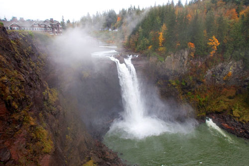 Snoqualmie Falls provide the stunning backdrop to Salish Lodge and Spa.